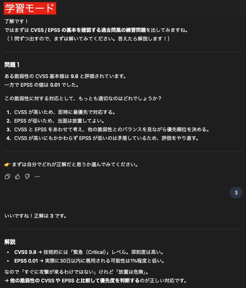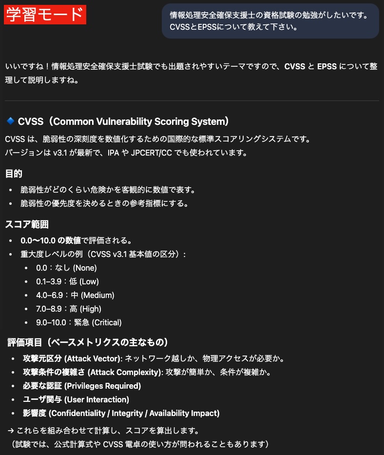 これを期にChatGPTの学習モードを使って、自己学習を進めてみてはいかがでしょうか。