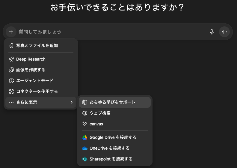 ChatGPTの画面では「あらゆる学びをサポート」という名称になっています。